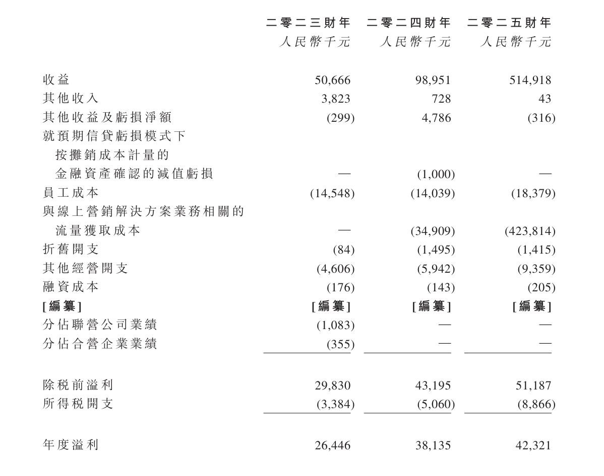 业绩方面,2023财年至2025财年,随手播分别实现收益5066.6万元、9895.1万元、5.15亿元,年度溢利分别为2644.6万元、3813.5万元、4232.1万元。