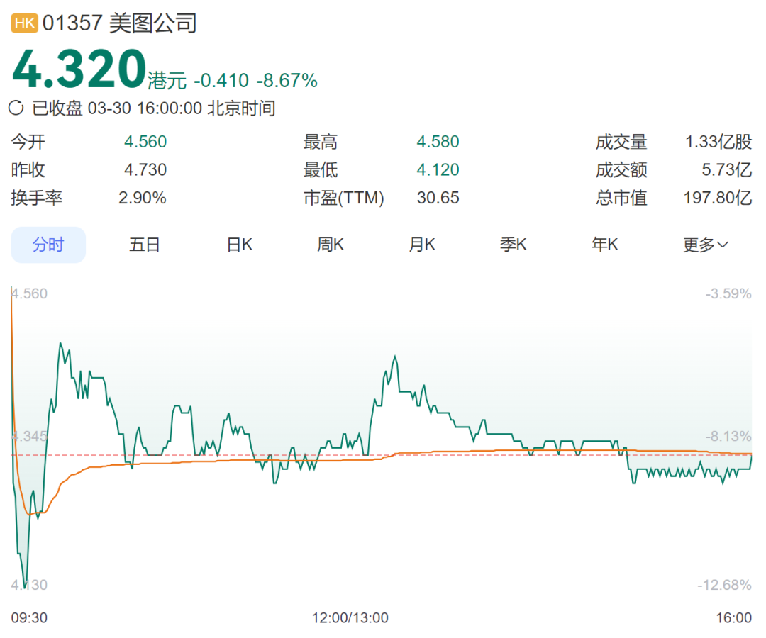 大型科网股全线下挫,美图公司跌8.67%,金山软件、哔哩哔哩等跌超3%,美团跌1.98%,小米集团跌1.88%。