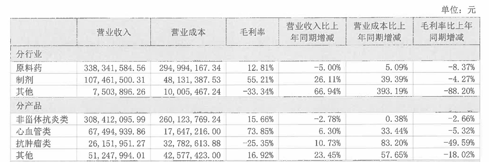分产品来看,亨迪药业2025年非甾体抗炎类产品、心血管类产品、抗肿瘤类产品、其他产品毛利率全线走低,降幅分别为2.66%、5.32%、49.59%、18.02%。