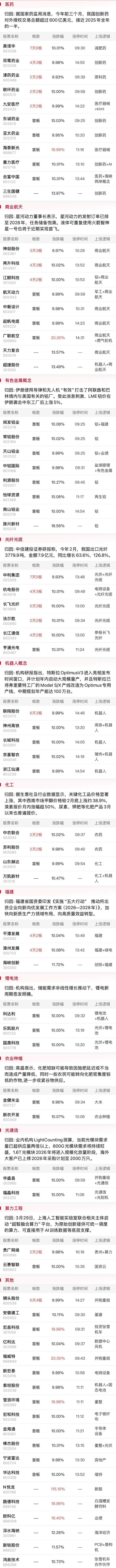 据界面新闻,SpaceX官网显示,SpaceX计划当地时间3月30日执行猎鹰9号“运输者-16”近地轨道发射任务。此前SpaceX计划募资超过750亿美元,此次IPO有望成为史上规模最大的首次公开募股。商业航天概念热度进一步提升,前期人气股神剑股份实现晋级3连板,再升科技反包涨停走出4天3板,西测测试盘中一度涨逾10%,逼近1月份创出的历史高点,进而带动广联航空等超跌股午后涨停。从神剑股份的连板带动多只低位品种的补涨,与此前绿电产业链的炒作脉络如出一辙,因此活跃资金从绿电到商业航天形成高低切,也从侧面反映的投机资金的参与接力的意愿相对有限。商业航天概念能否复制去年底的大容量抱团行情,从市场整体流动性看仍有欠缺,后市仍应以聚焦于当前反弹落后的前期人气股为主。