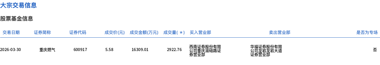 原标题:重庆燃气今日大宗交易溢价成交2922.76万股,成交额1.63亿元