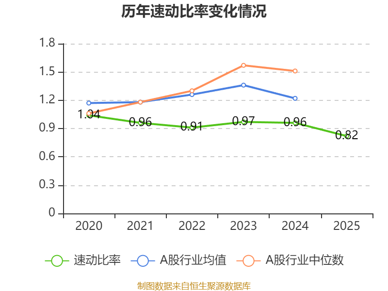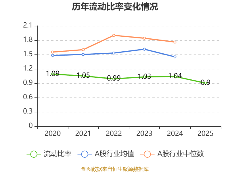 2025年,公司流动比率为0.90,速动比率为0.82。