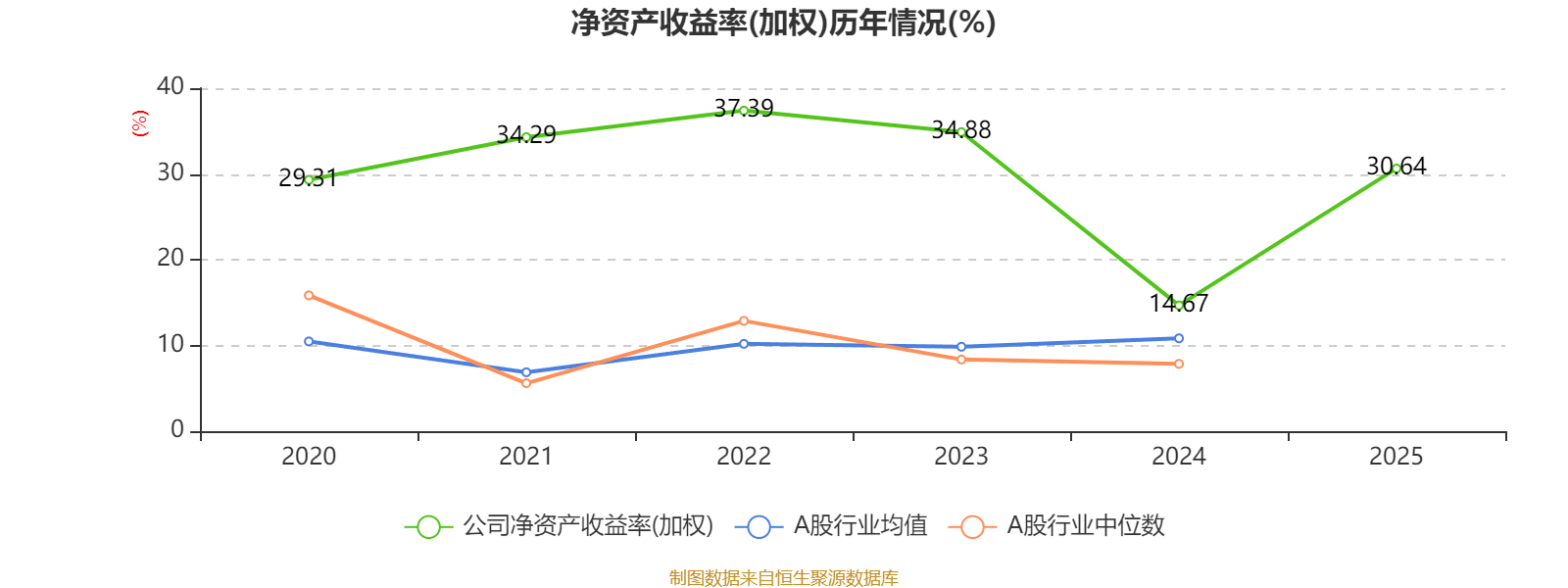 数据显示,2025年公司平均净资产收益率为30.64%,较上年同期上升15.97个百分点。