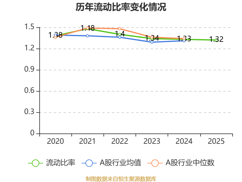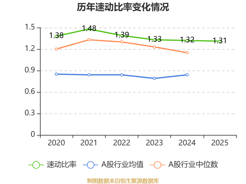 2025年,公司流动比率为1.32,速动比率为1.31。