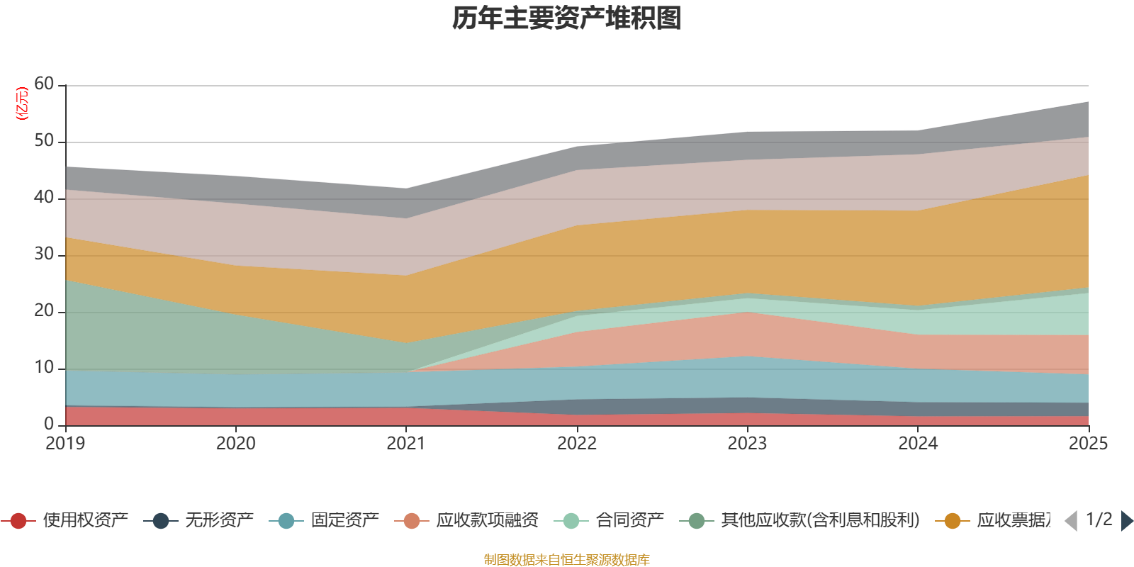 资产重大变化方面,截至2025年末,公司货币资金较上期末减少32.47%,占公司总资产比重下降7.37个百分点;合同资产较上期末增加71.06%,占公司总资产比重上升4.65个百分点;固定资产较上期末减少14.82%,占公司总资产比重下降2.54个百分点;应收票据及应收账款较上期末增加18.11%,占公司总资产比重上升2.45个百分点。