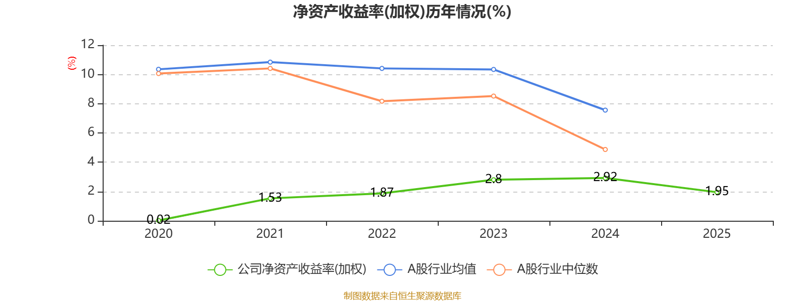 数据显示,2025年公司平均净资产收益率为1.95%,较上年同期下降0.97个百分点。