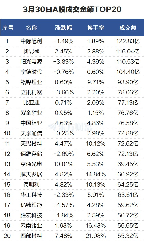 3月30日,上证指数涨0.24%,收报3923.29点;深证成指跌0.25%,收报13726.19点;创业板指跌0.68%,收报3273.36点。