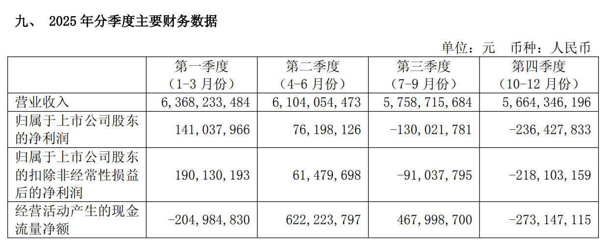 从季度数据来看,公司经营颓势在下半年尤为明显。第四季度单季归母净利润亏损高达2.36亿元,严重拖累了全年业绩。