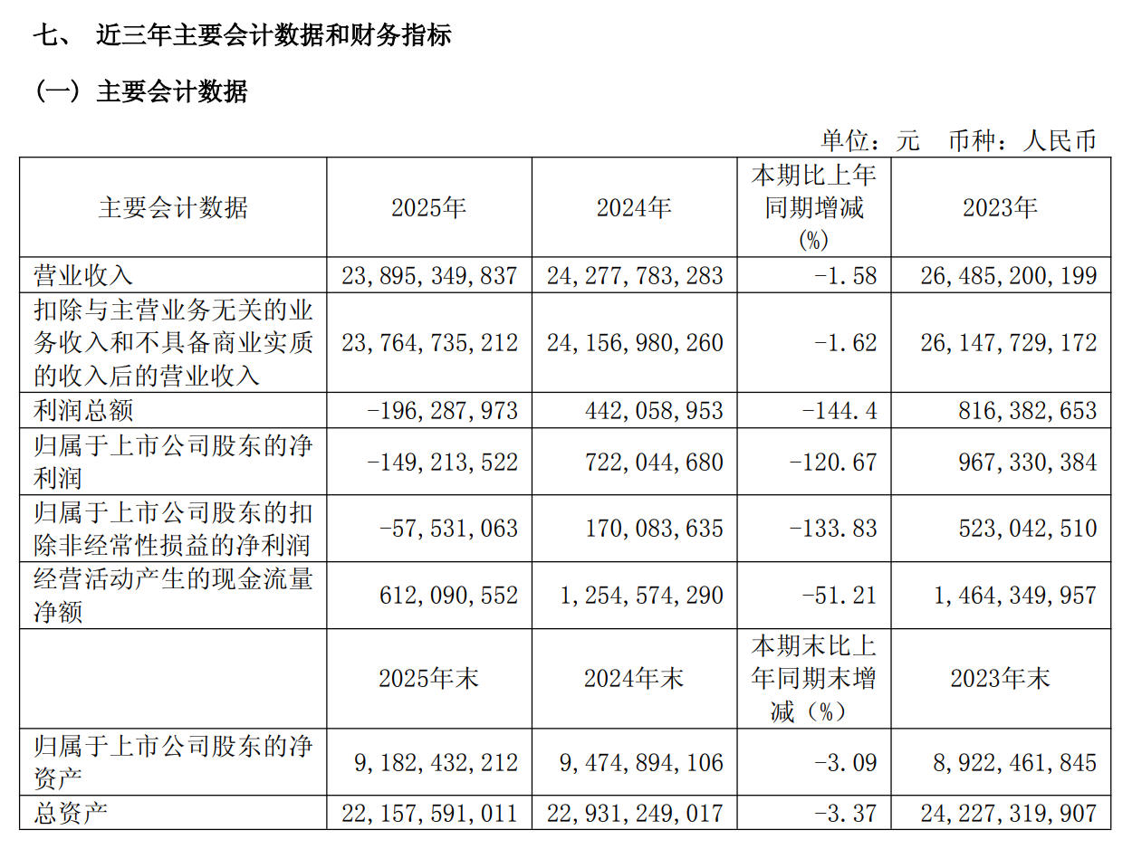 3月30日晚间,光明乳业(600597)披露2025年年报,报告期内实现营业收入238.95亿元,同比下降1.58%;归母净利润亏损1.49亿元,上年同期盈利7.22亿元,2025年同比大幅下降120.67%,为近年来首次出现年度亏损。公司同时宣布,因年度亏损,2025年度拟不进行利润分配。