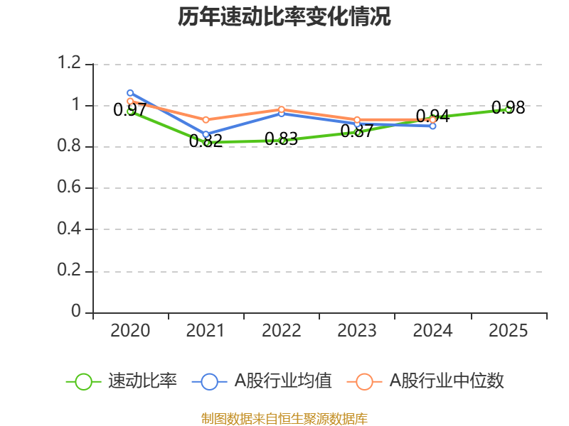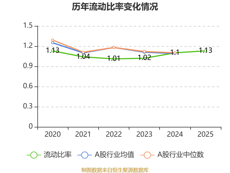 2025年,公司流动比率为1.13,速动比率为0.98。