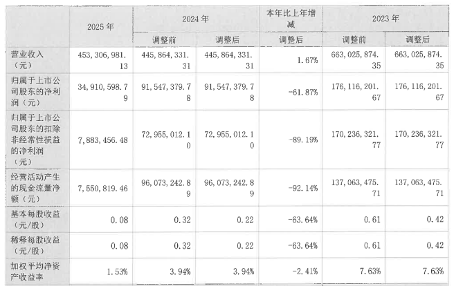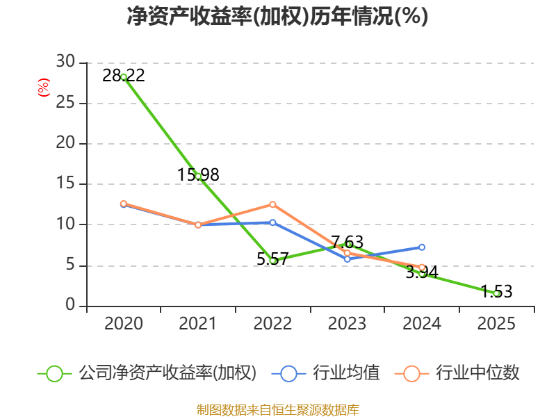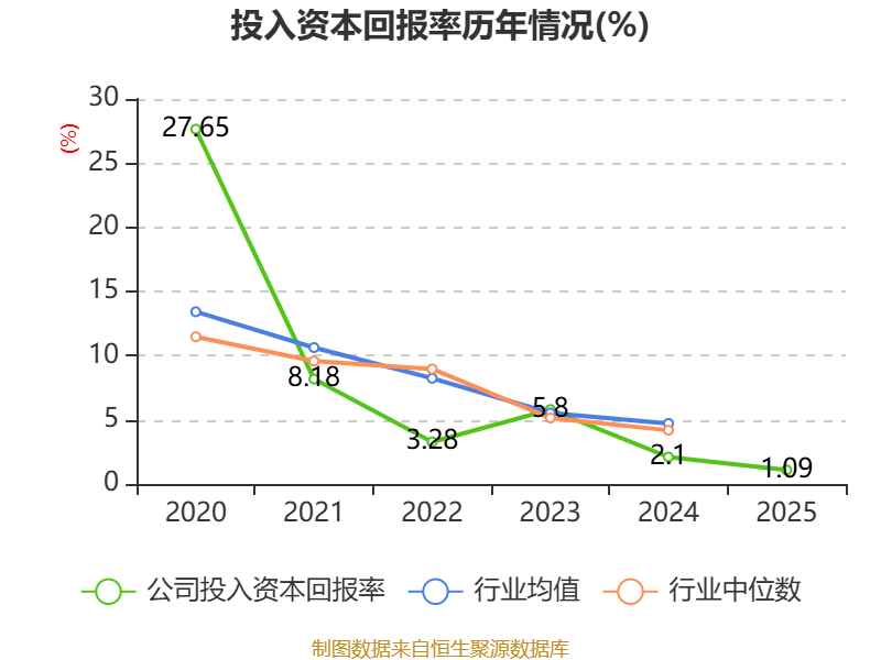 数据显示,2025年公司加权平均净资产收益率为1.53%,较上年同期下降2.41个百分点。公司2025年投入资本回报率为1.09%,较上年同期下降1.01个百分点。