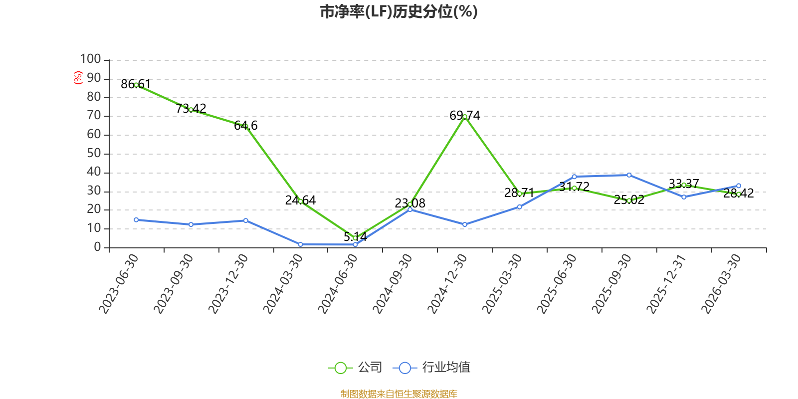 市盈率、市净率为负时,不显示当期分位数,会导致折线图中断。
