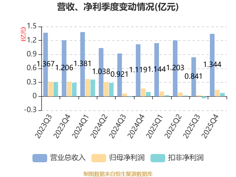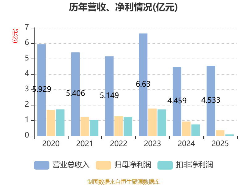 中证智能财讯亨迪药业(301211)3月31日披露2025年年度报告。2025年,公司实现营业总收入4.53亿元,同比增长1.67%;归母净利润3491.06万元,同比下降61.87%;扣非净利润788.35万元,同比下降89.19%;经营活动产生的现金流量净额为755.08万元,同比下降92.14%;报告期内,亨迪药业基本每股收益为0.08元,加权平均净资产收益率为1.53%。公司2025年度分配预案为:拟向全体股东每10股派现0.6元(含税)。