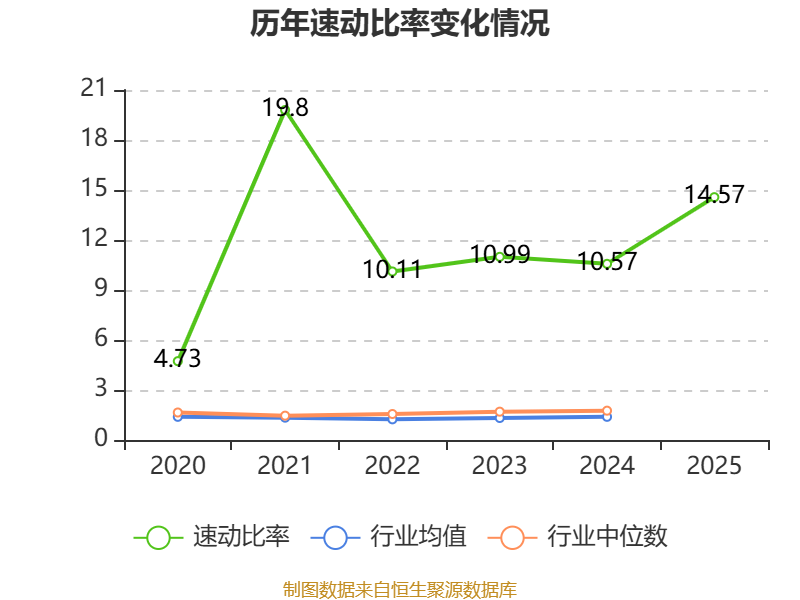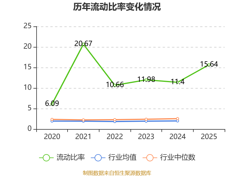 2025年,公司流动比率为15.64,速动比率为14.57。