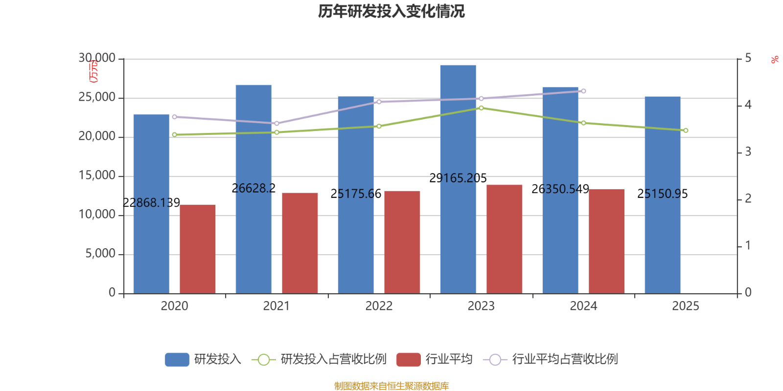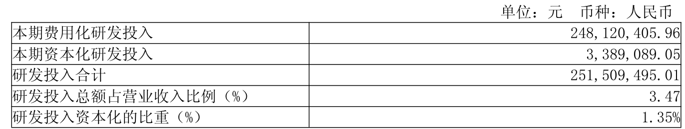 2025年全年,公司研发投入金额为2.52亿元,同比下降4.55%;研发投入占营业收入比例为3.47%,相比上年同期下降0.16个百分点。此外,公司全年研发投入资本化率为1.35%。