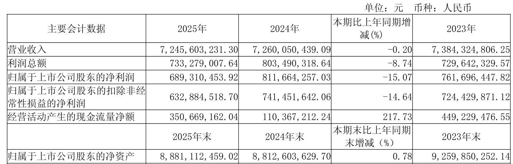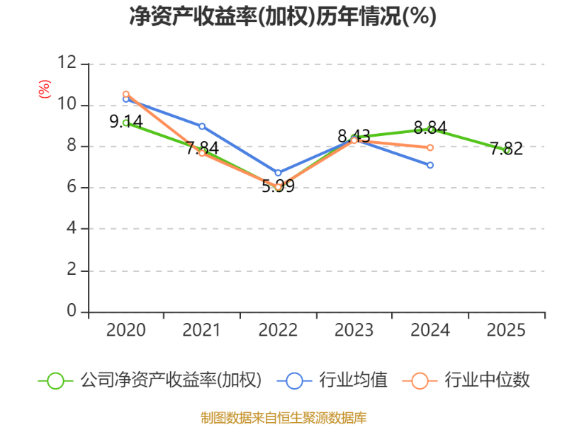 数据显示,2025年公司加权平均净资产收益率为7.82%,较上年同期下降1.02个百分点。公司2025年投入资本回报率为6.75%,较上年同期下降0.52个百分点。