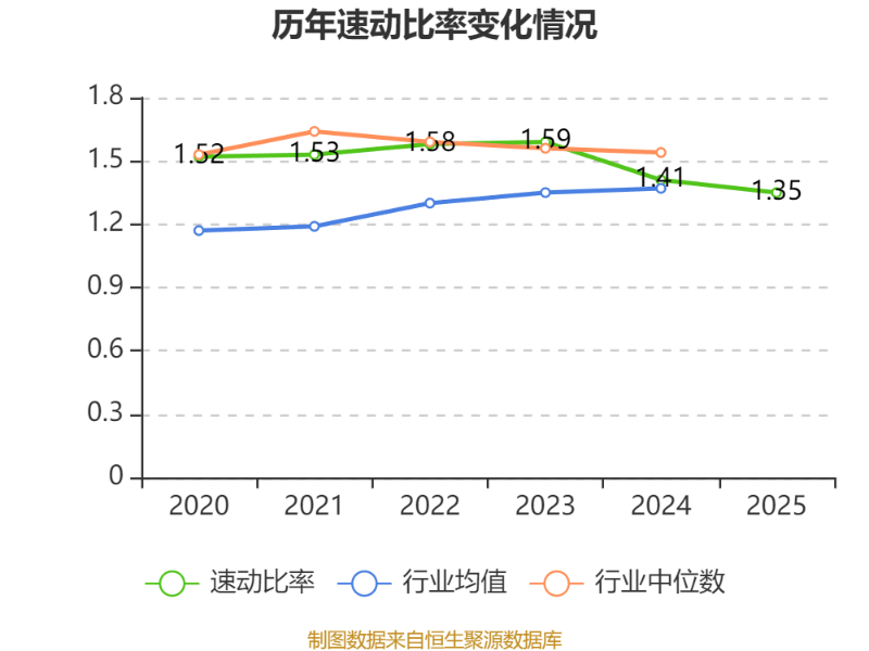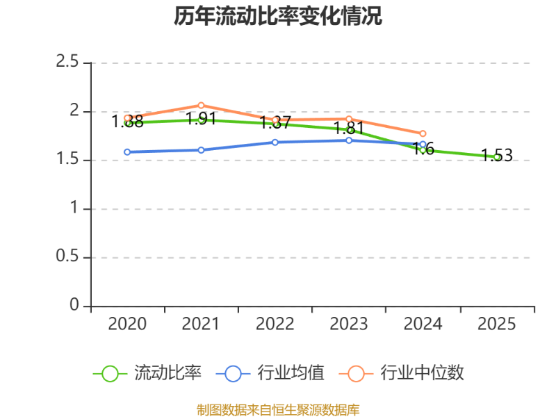 2025年,公司流动比率为1.53,速动比率为1.35。