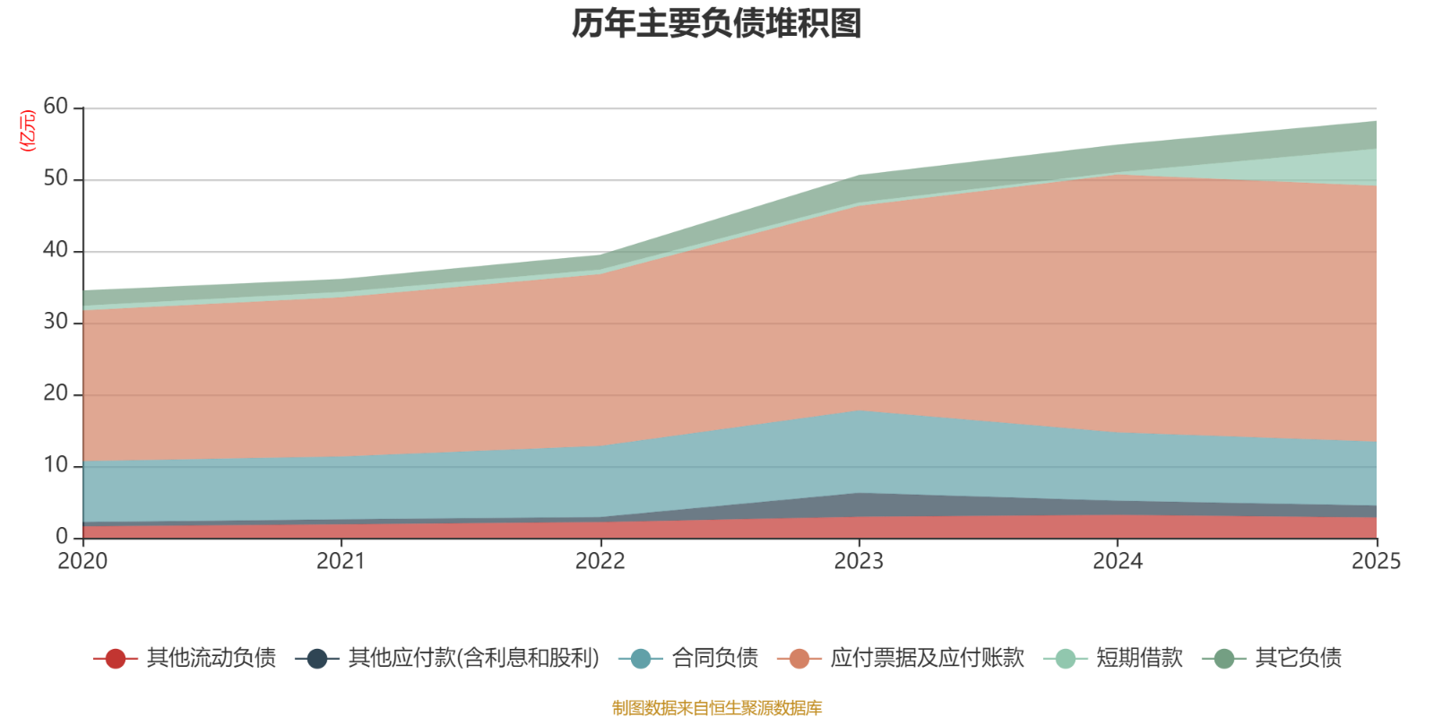 负债重大变化方面,截至2025年末,公司短期借款较上年末增加1523.57%,占公司总资产比重上升3.2个百分点;应付票据及应付账款较上年末减少0.8%,占公司总资产比重下降0.85个百分点;合同负债较上年末减少6.54%,占公司总资产比重下降0.59个百分点;其他流动负债较上年末减少11.14%,占公司总资产比重下降0.29个百分点。