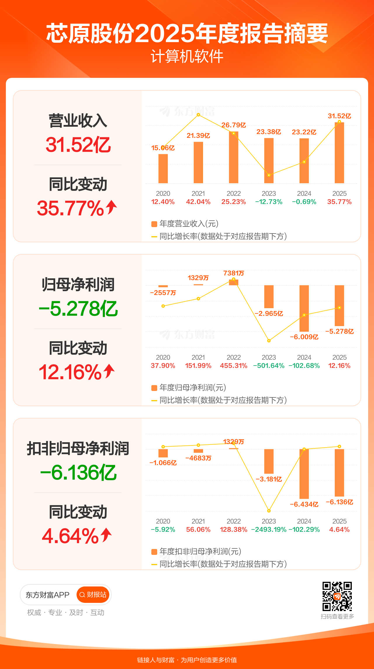 芯原股份3月31日发布2025年年报显示,公司全年实现营业收入31.52亿元,同比增长35.77%;归母净利润-5.28亿元;扣非归母净利润-6.14亿元。