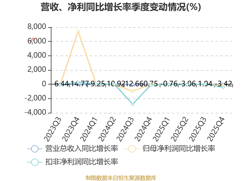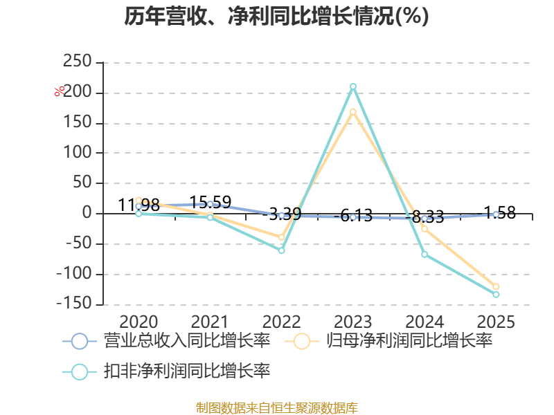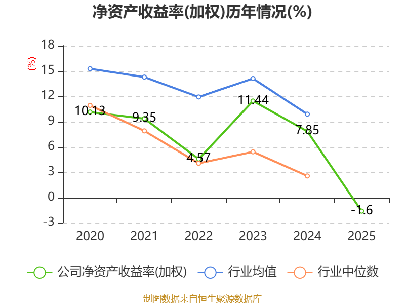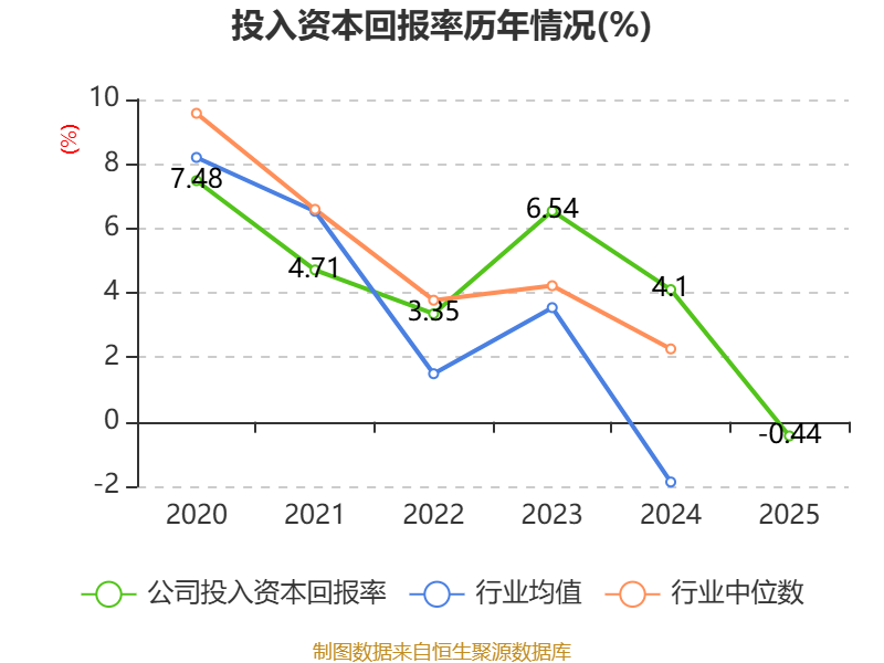 数据显示,2025年公司加权平均净资产收益率为-1.6%,较上年同期下降9.45个百分点。公司2025年投入资本回报率为-0.44%,较上年同期下降4.54个百分点。