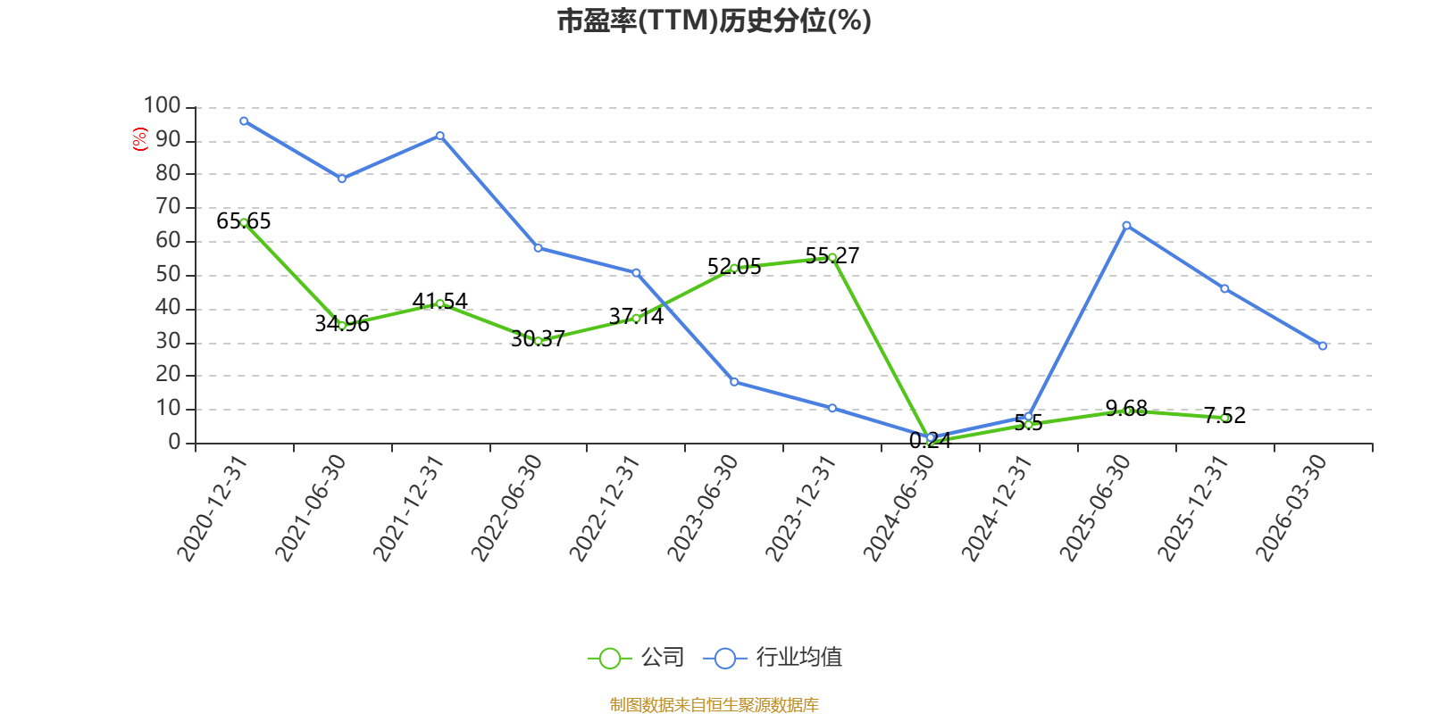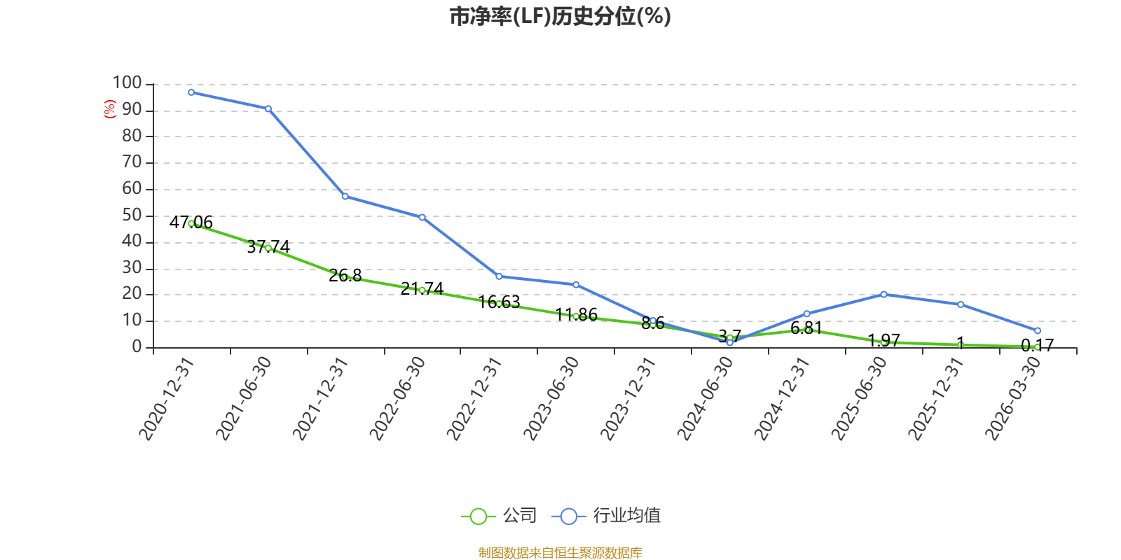 市盈率、市净率为负时,不显示当期分位数,会导致折线图中断。
