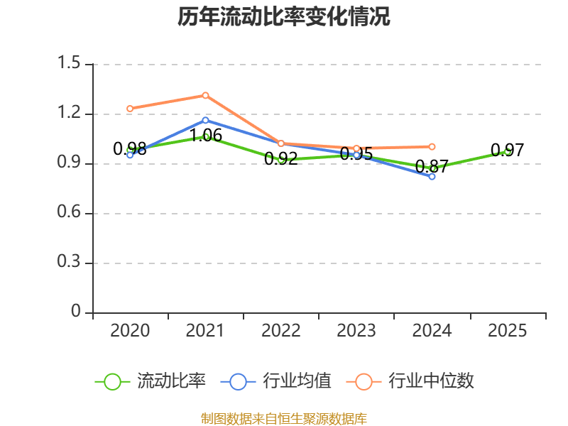 2025年,公司流动比率为0.97,速动比率为0.65。
