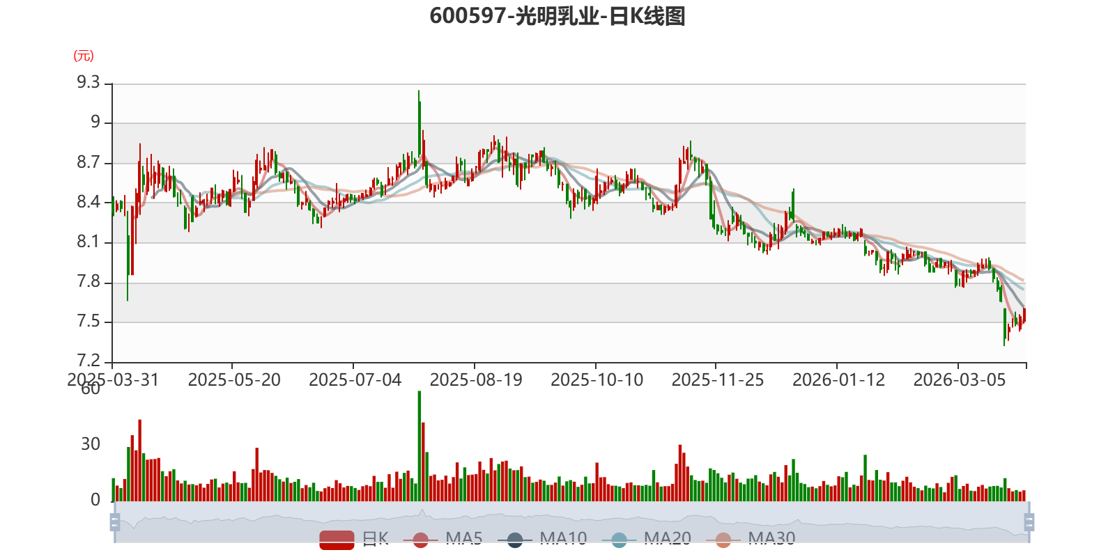 以3月30日收盘价计算,光明乳业目前市盈率(TTM)约为-70.21倍,市净率(LF)约1.14倍,市销率(TTM)约0.44倍。
