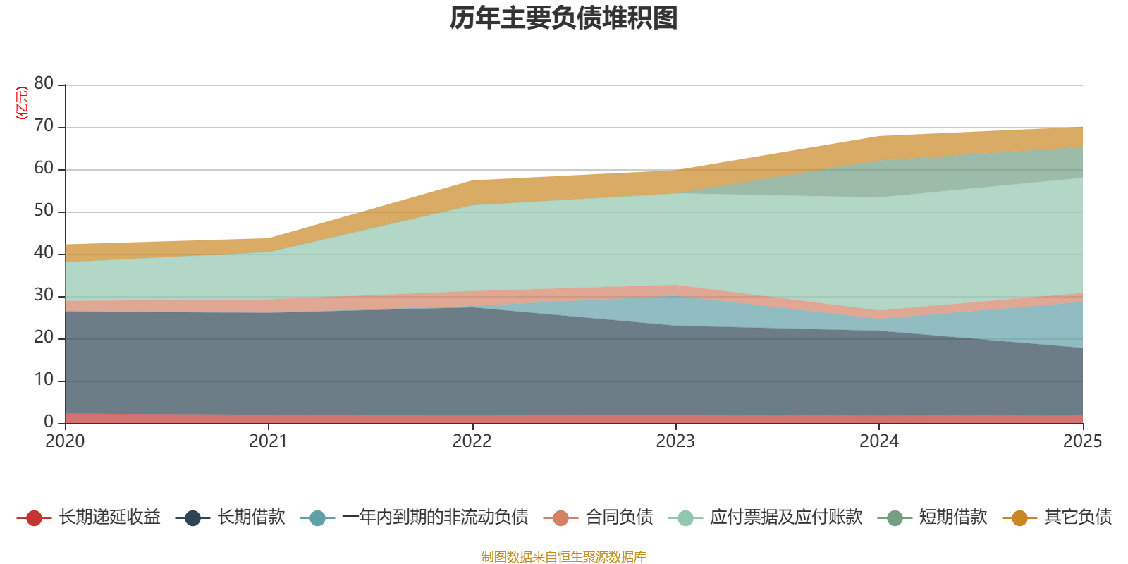 负债重大变化方面,截至2025年末,公司一年内到期的非流动负债较上年末增加287.73%,占公司总资产比重上升6.57个百分点;长期借款较上年末减少21.04%,占公司总资产比重下降2.62个百分点;应付票据及应付账款较上年末增加1.9%,占公司总资产比重上升1.41个百分点;短期借款较上年末减少16.12%,占公司总资产比重下降0.8个百分点。
