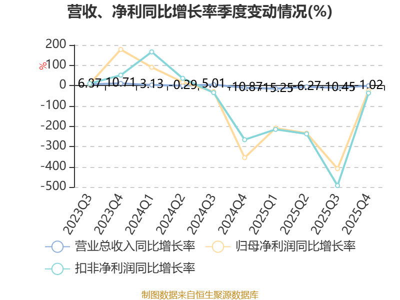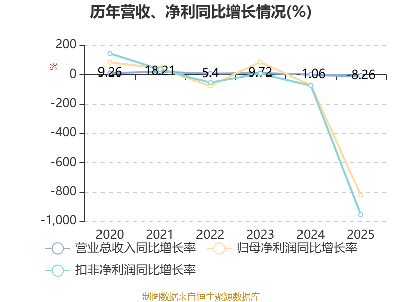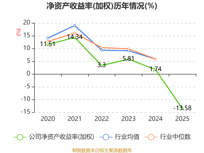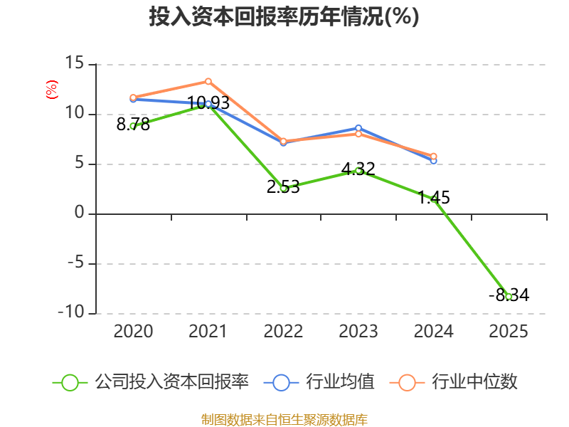 数据显示,2025年公司加权平均净资产收益率为-13.58%,较上年同期下降15.32个百分点。公司2025年投入资本回报率为-8.34%,较上年同期下降9.79个百分点。