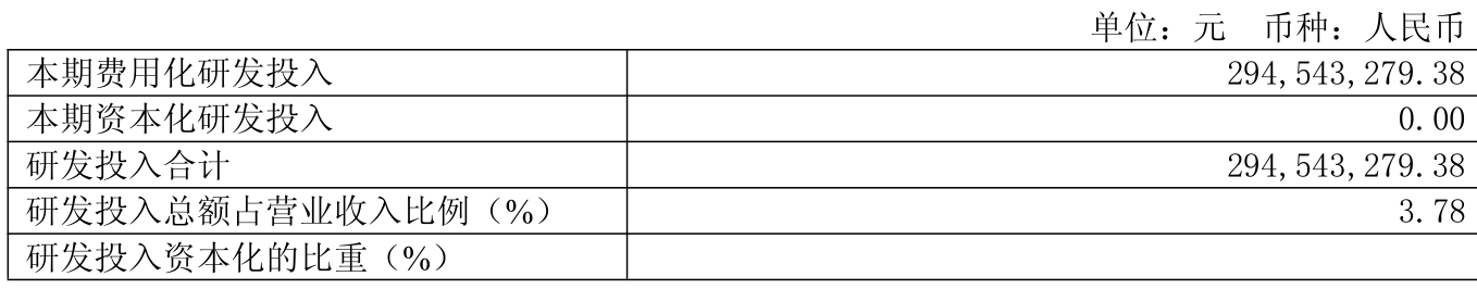 2025年全年,公司研发投入金额为2.95亿元,同比下降18.38%;研发投入占营业收入比例为3.78%,相比上年同期下降0.47个百分点。此外,公司全年研发投入资本化率为0%。