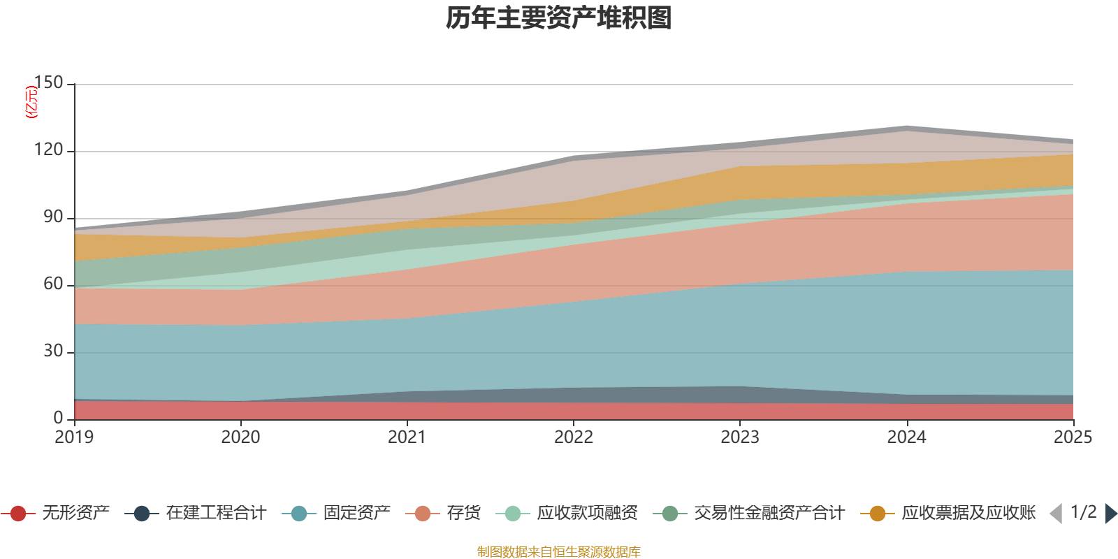 资产重大变化方面,截至2025年末,公司货币资金较上年末减少67.95%,占公司总资产比重下降7.27个百分点;存货较上年末增加11.37%,占公司总资产比重上升3.92个百分点;固定资产较上年末增加1.6%,占公司总资产比重上升2.77个百分点;应收款项融资较上年末增加37.44%,占公司总资产比重上升0.56个百分点。