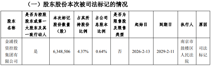 据2月24日公告,金浦钛业公司控股股东金浦集团所持634.85万股公司股份被司法标记,占其持股总数的4.37%,占公司总股本的0.64%,涉及债权额及执行费用3810.50万元。