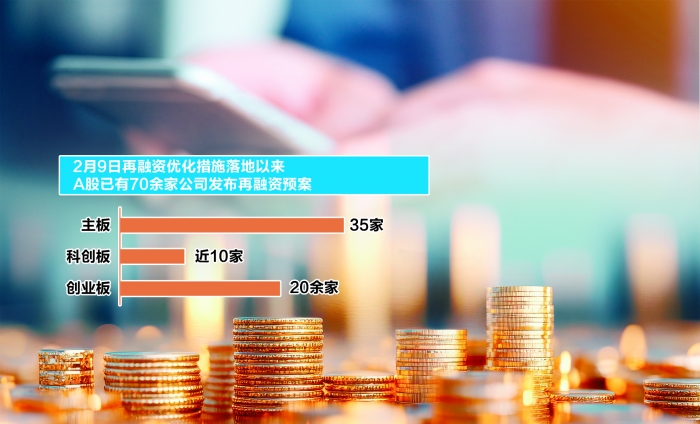 自2月9日优化再融资一揽子措施发布以来,A股再融资市场呈现明显的升温态势。据上海证券报记者统计,2月9日至今,A股已有70余家上市公司发布再融资预案,其中计算机、通信和其他电子设备制造业公司再融资较为活跃,科创板及创业板公司再融资需求强劲。从募资投向来看,大部分公司的募投项目用于主业扩张,或加码科技创新,打造新增长点。