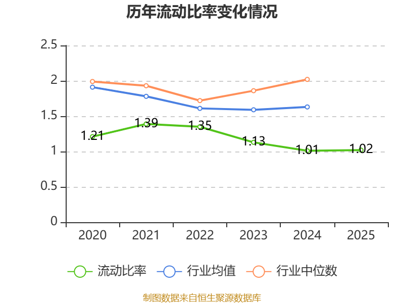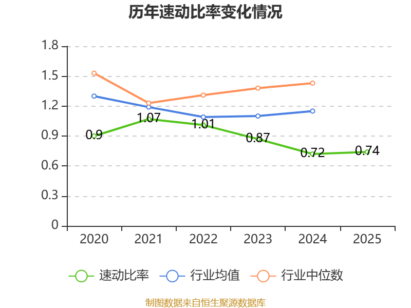 2025年,公司流动比率为1.02,速动比率为0.74。
