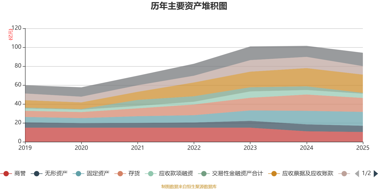 资产重大变化方面,截至2025年末,公司交易性金融资产合计较上年末减少78.88%,占公司总资产比重下降2.96个百分点;货币资金较上年末减少25.18%,占公司总资产比重下降2.29个百分点;应收票据及应收账款较上年末增加0.45%,占公司总资产比重上升1.55个百分点;固定资产较上年末增加2.53%,占公司总资产比重上升1.48个百分点。