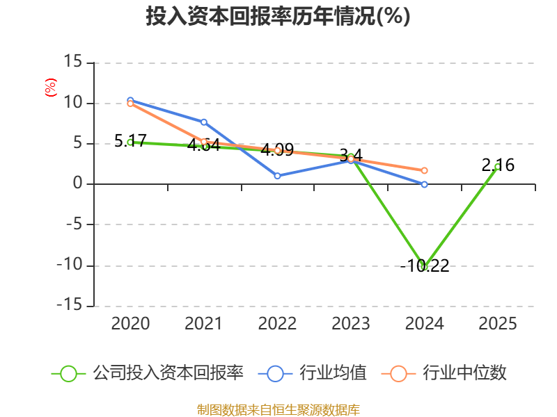 数据显示,2025年公司加权平均净资产收益率为2.4%,较上年同期上升38.59个百分点。公司2025年投入资本回报率为2.16%,较上年同期上升12.38个百分点。