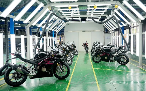重庆张雪机车工业有限公司车间内组装好的摩托车。上游新闻记者周本帅摄