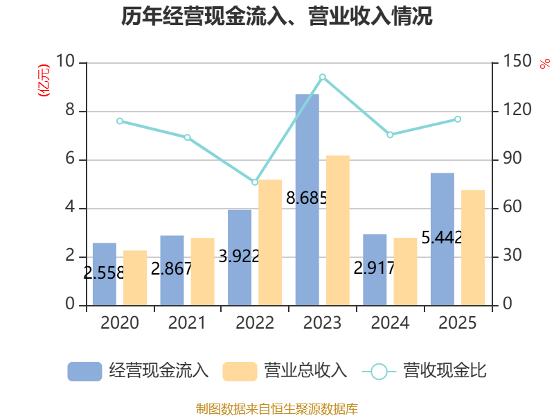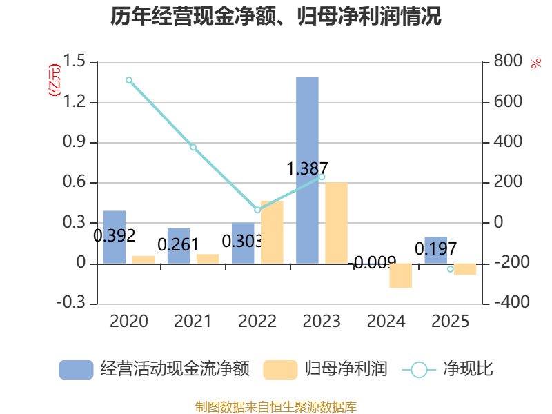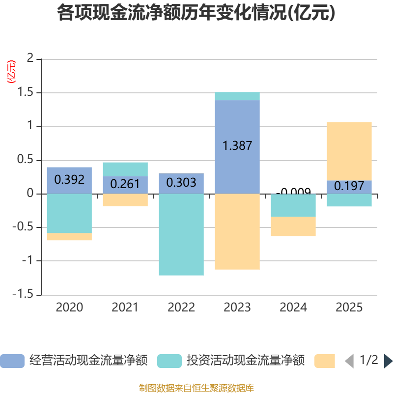 截至2025年,公司经营活动现金流净额为1973.96万元,同比增加2068.08万元;筹资活动现金流净额8650.53万元,同比增加1.15亿元;投资活动现金流净额-1887.93万元,上年同期为-3344.7万元。