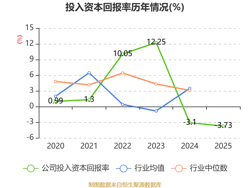 数据显示,2025年公司加权平均净资产收益率为-1.68%,较上年同期上升1.76个百分点。公司2025年投入资本回报率为-3.73%,较上年同期下降0.63个百分点。