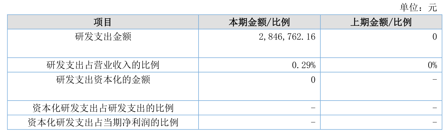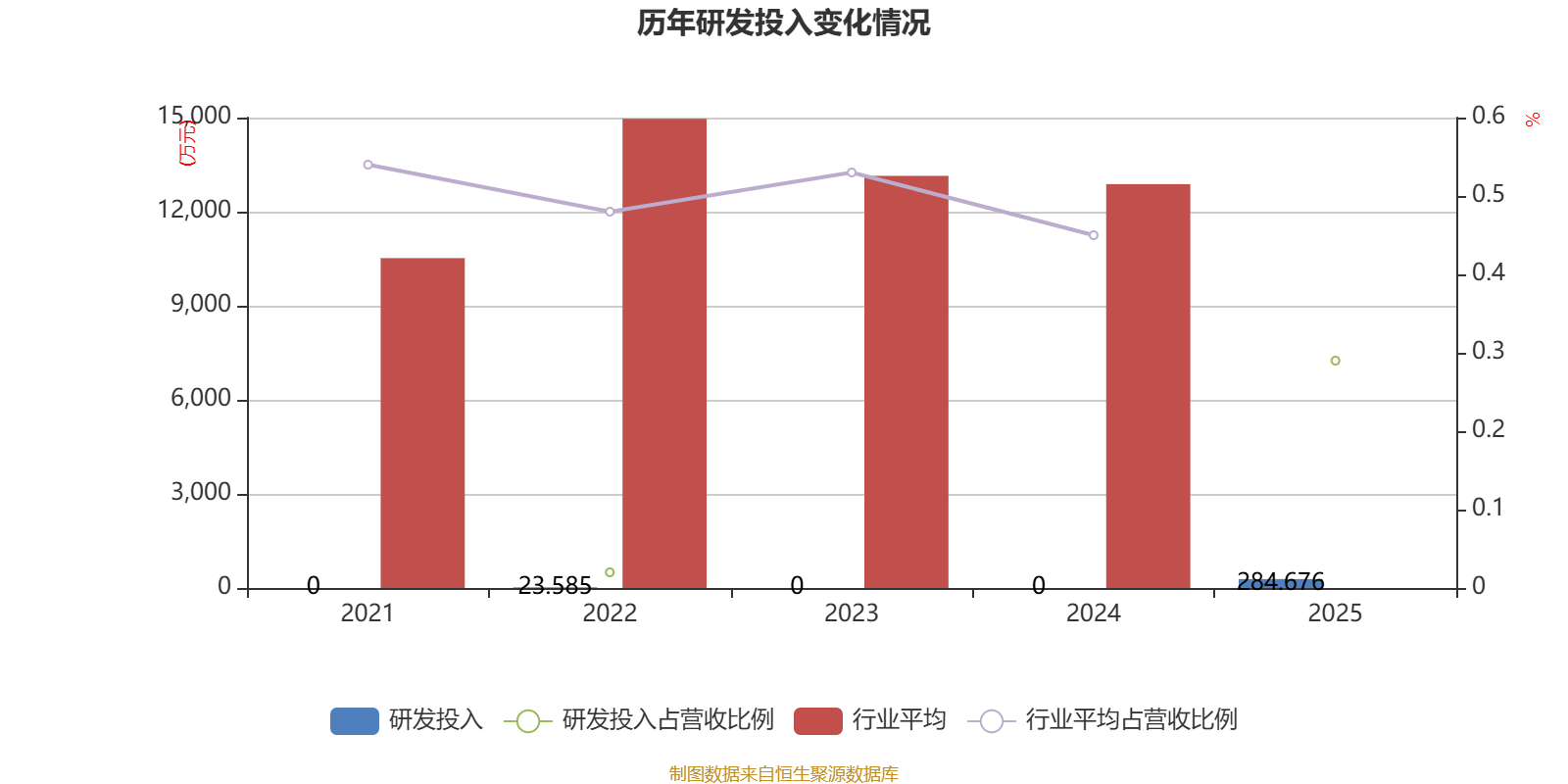 2025年全年,公司研发投入金额为284.68万元;研发投入占营业收入比例为0.29%。此外,公司全年研发投入资本化率为0%。