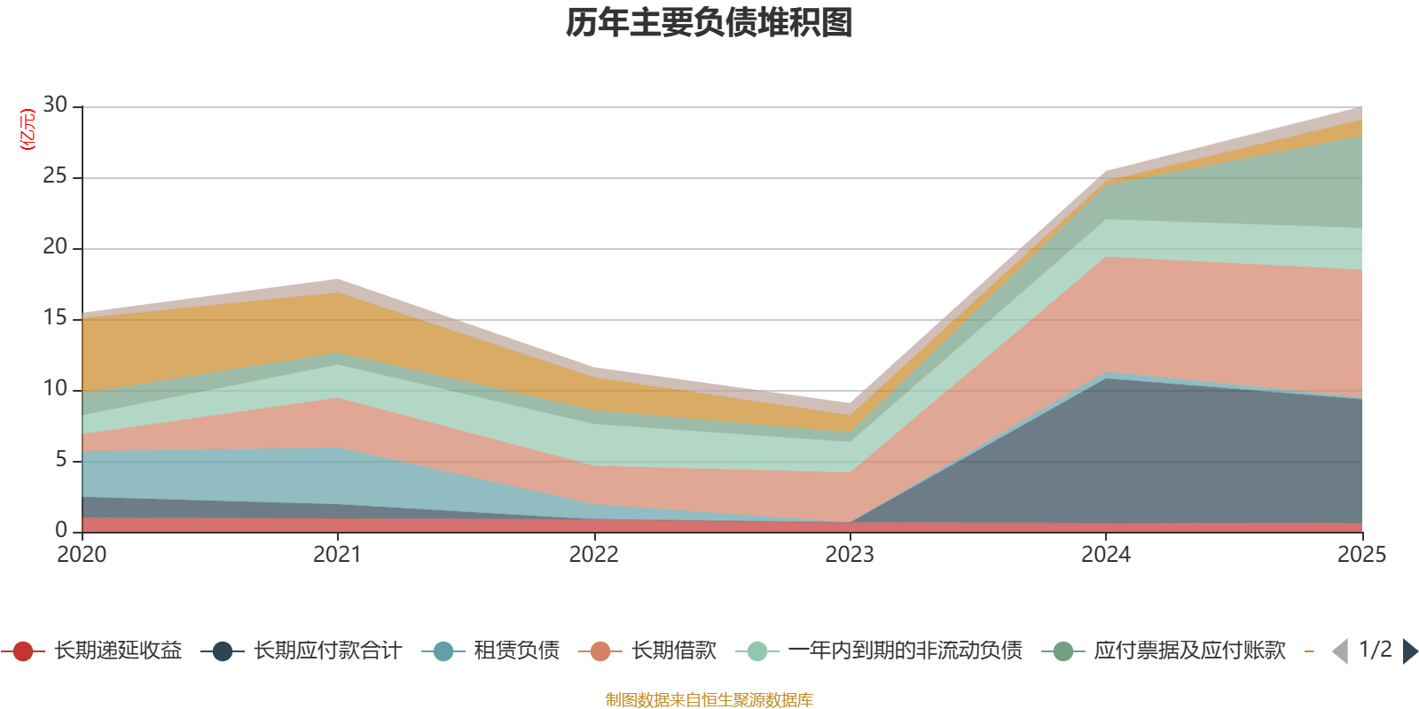 负债重大变化方面,截至2025年末,公司应付票据及应付账款较上年末增加170.5%,占公司总资产比重上升8.79个百分点;长期应付款合计较上年末减少14.06%,占公司总资产比重下降5.98个百分点;短期借款较上年末增加261.07%,占公司总资产比重上升1.84个百分点;租赁负债较上年末减少72.25%,占公司总资产比重下降0.92个百分点。