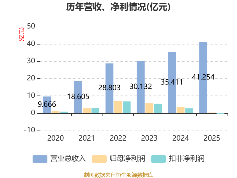 中证智能财讯星源材质(300568)3月31日披露2025年年度报告。2025年,公司实现营业总收入41.25亿元,同比增长16.50%;归母净利润3636.78万元,同比下降90.00%;扣非净利润亏损5429.09万元,上年同期盈利2.83亿元;经营活动产生的现金流量净额为7.53亿元,同比增长104.24%;报告期内,星源材质基本每股收益为0.0272元,加权平均净资产收益率为0.37%。公司2025年度分配预案为:拟向全体股东每10股派现0.1元(含税)。