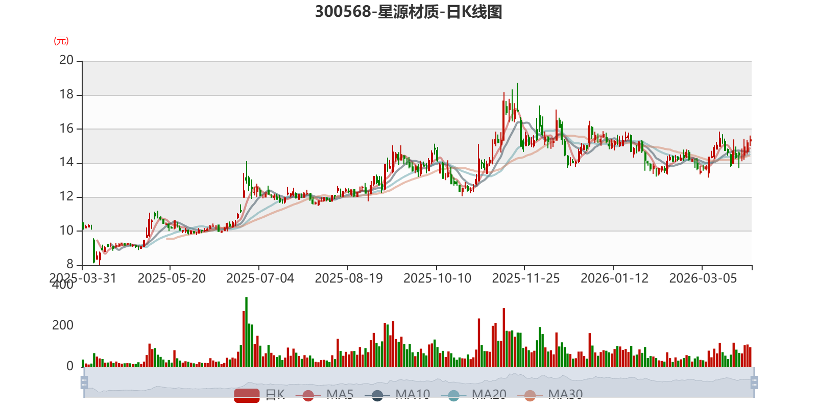 以3月30日收盘价计算,星源材质目前市盈率(TTM)约为568.73倍,市净率(LF)约2.1倍,市销率(TTM)约5.01倍。