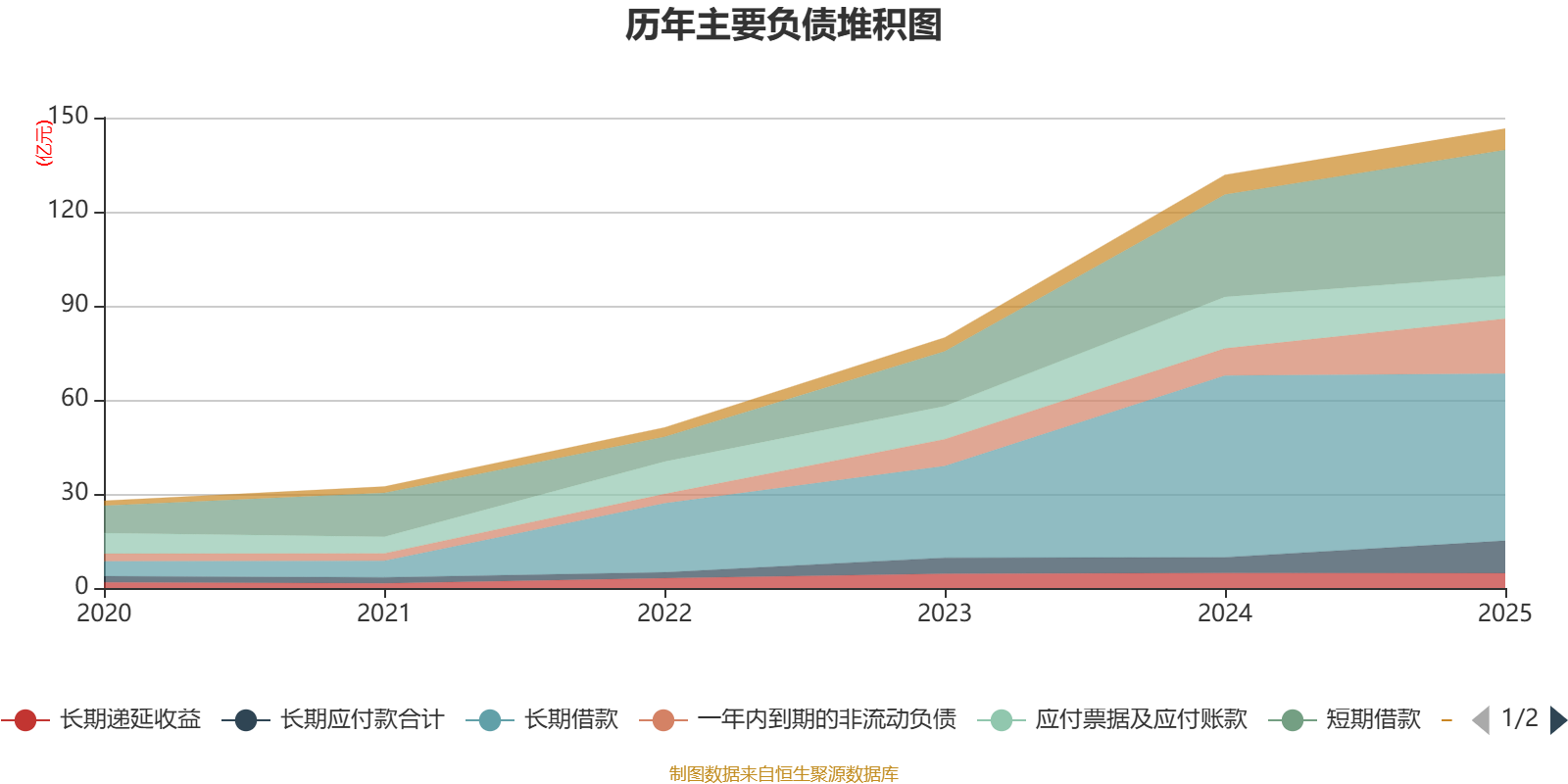 负债重大变化方面,截至2025年末,公司长期借款较上年末减少8.14%,占公司总资产比重下降3.51个百分点;一年内到期的非流动负债较上年末增加103.57%,占公司总资产比重上升3.37个百分点;短期借款较上年末增加23.18%,占公司总资产比重上升2.16个百分点;长期应付款合计较上年末增加105.53%,占公司总资产比重上升2.01个百分点。