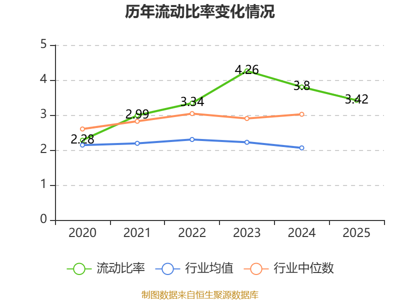 2025年,公司流动比率为3.42,速动比率为3.02。