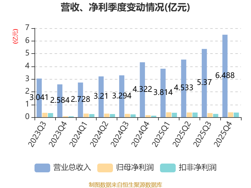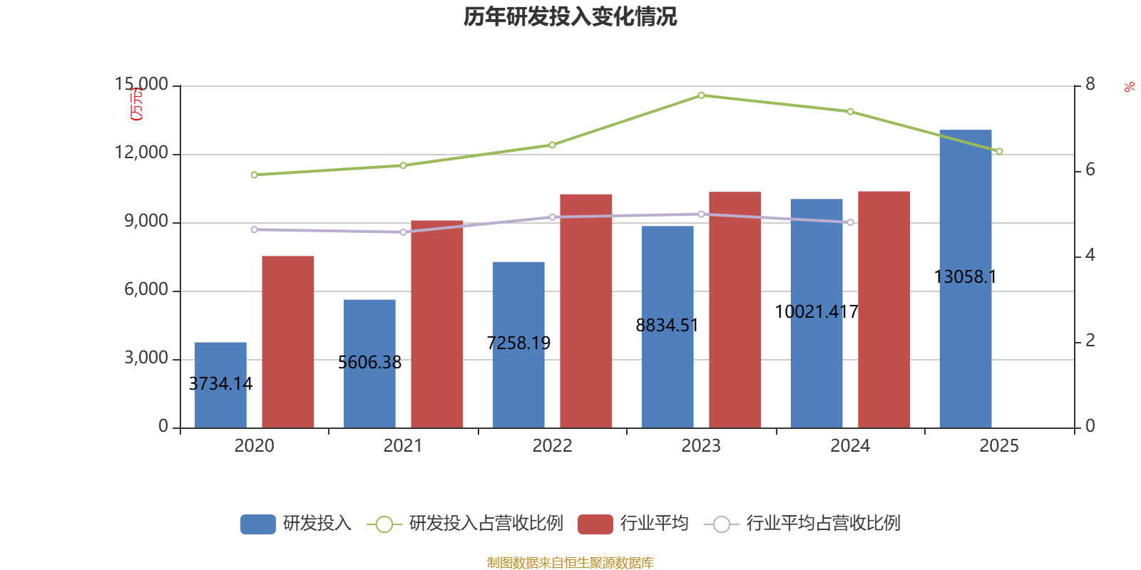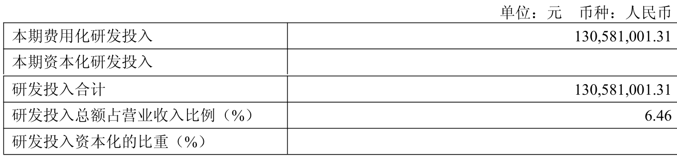 2025年全年,公司研发投入金额为1.31亿元,同比增长30.3%;研发投入占营业收入比例为6.46%,相比上年同期下降0.93个百分点。此外,公司全年研发投入资本化率为0%。