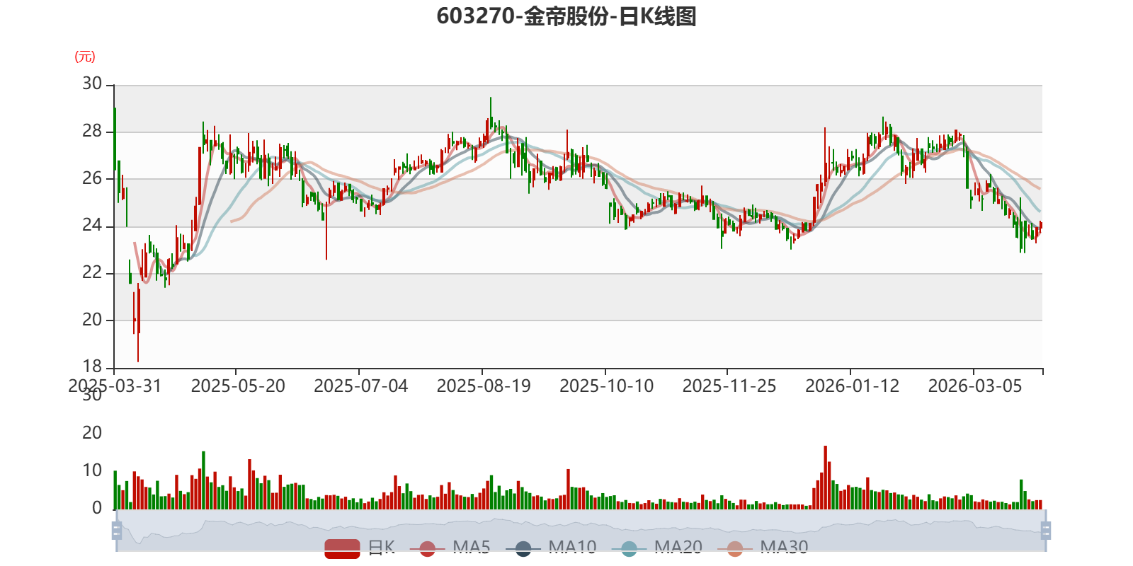 以3月30日收盘价计算,金帝股份目前市盈率(TTM)约为35.95倍,市净率(LF)约2.34倍,市销率(TTM)约2.62倍。