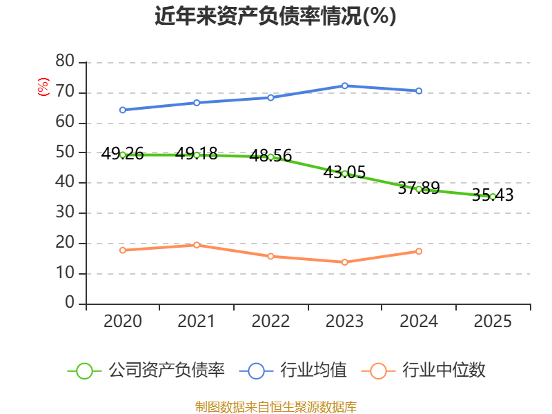 资产重大变化方面,截至2025年末,公司其他权益工具投资较上年末减少99.75%,占公司总资产比重下降4.22个百分点;货币资金较上年末增加25.88%,占公司总资产比重上升3.27个百分点;存货较上年末增加23.61%,占公司总资产比重上升1.87个百分点;在建工程合计较上年末增加110.73%,占公司总资产比重上升1.21个百分点。