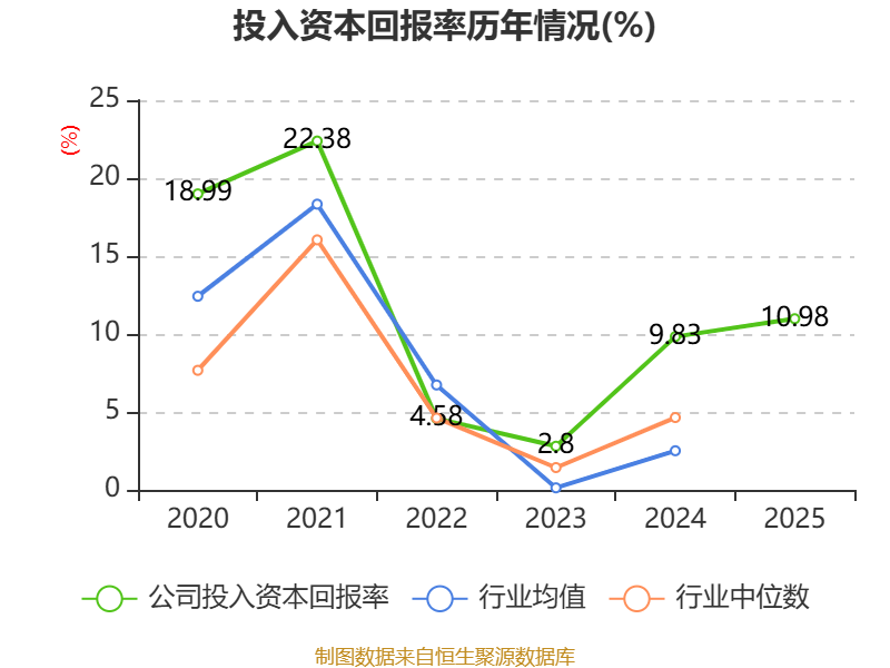 数据显示,2025年公司加权平均净资产收益率为15.39%,较上年同期上升0.56个百分点。公司2025年投入资本回报率为10.98%,较上年同期上升1.15个百分点。