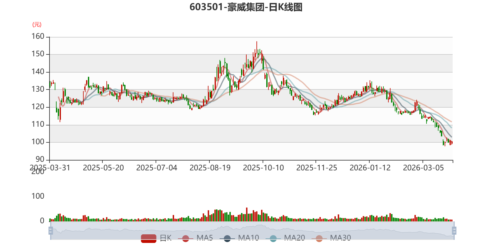 值得注意的是,中登公司数据显示,截至2026年3月27日,豪威集团15.52%股份处于质押状态。年报显示,第一大股东虞仁荣质押1.72亿股公司股份,占其全部持股的56.61%;第三大股东绍兴市韦豪股权投资基金合伙企业(有限合伙)质押1585.6万股公司股份,占其全部持股的21.39%。